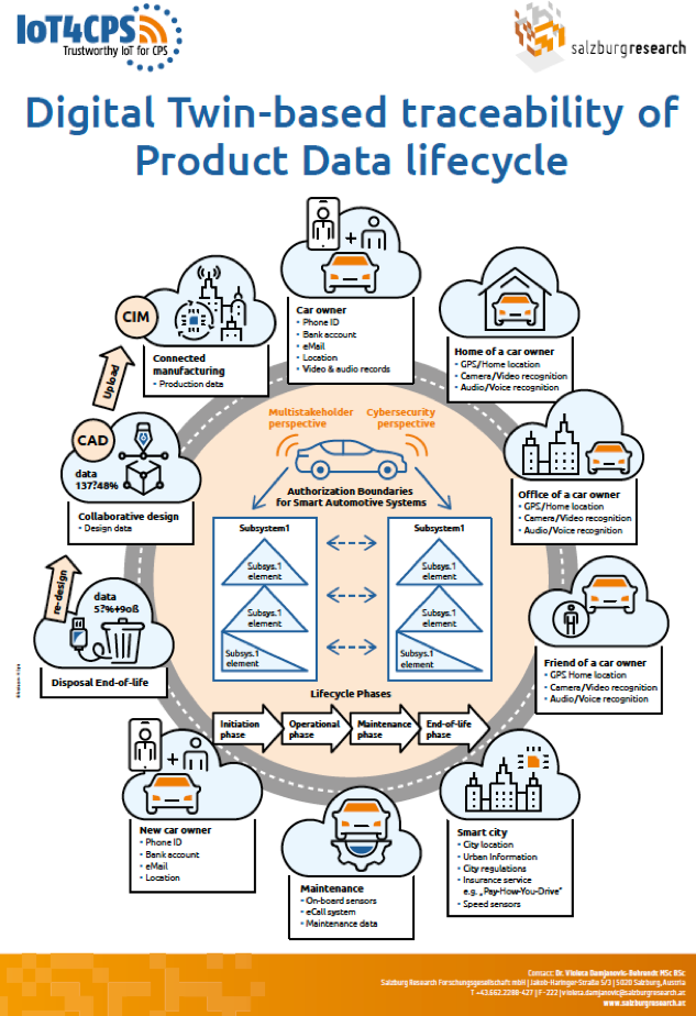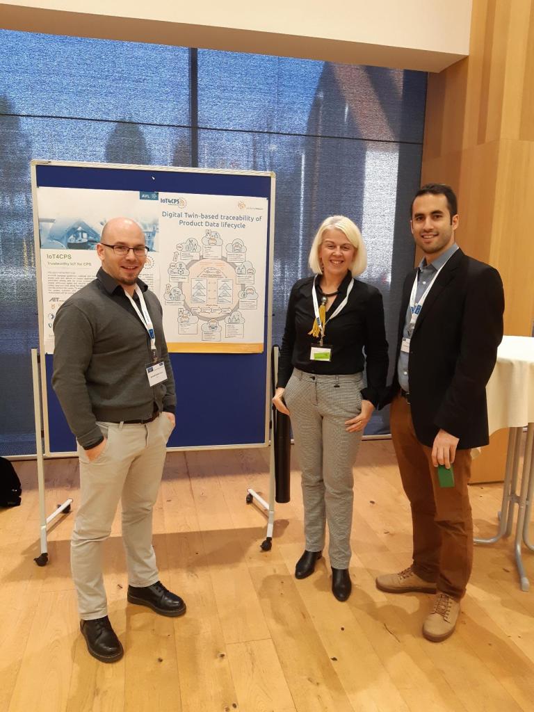 On 19th November 2019, Stefan Marksteiner from AVL and myself jointly presented our project-related achievements, during the AVL Research Networking Day 2019 in Graz. The topic of the poster presented at the event was “Digital Twin-based Traceability of Product Data Lifecycle” (see below) that explains our work on the design and implementation of the Digital Twin-based research prototype of IoT lifecycle data management for the Connected and Automated Mobility applications.
